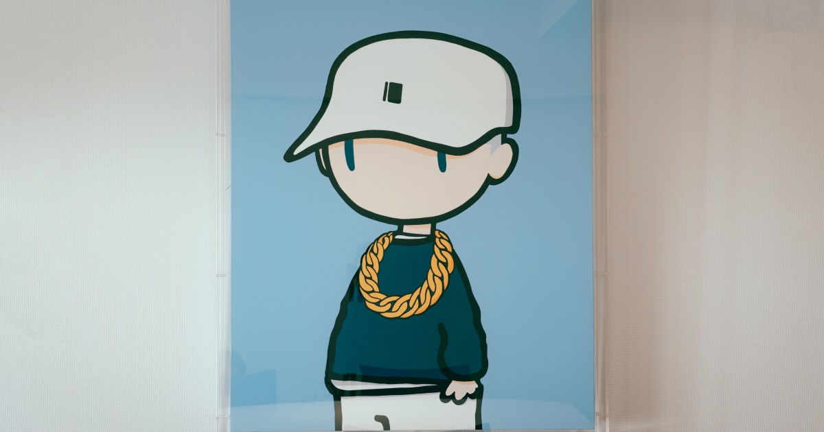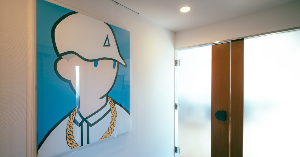 こちらのオフィスに引っ越したのが4ヶ月前ですが、せっかくいい感じのオフィスなので僕たちの会社らしさをもっと出したいなと。当社は広告を作っている会社で、ストリートカルチャーから得た発想を大事にして仕事をしているんです。だからストリートっぽい絵を飾ることで「らしい空間」になると思い、こちらの作品を選びました。